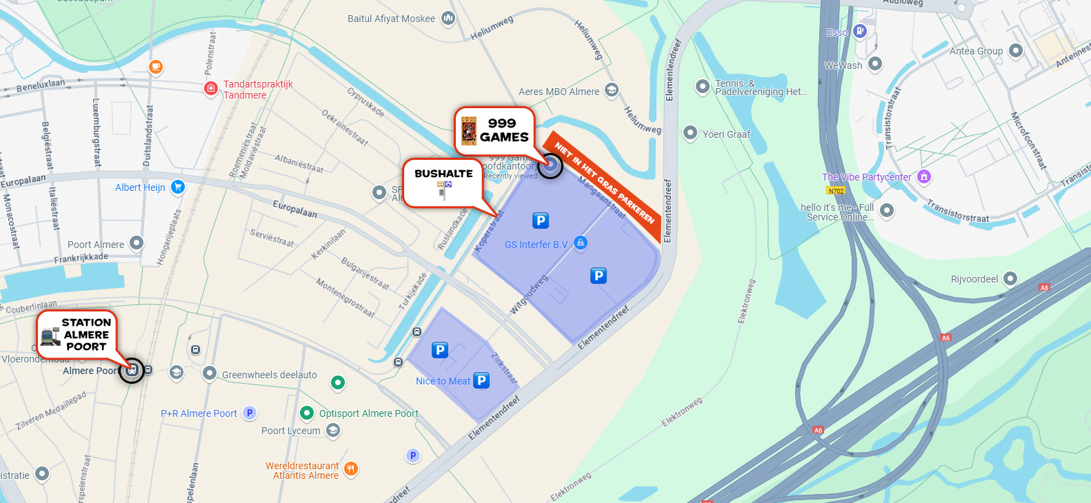 Omdat het erg druk kan zijn met parkeren, raden we aan om met het openbaar vervoer te komen. Je kunt dan het beste uitstappen op station Almere Poort. Vanaf daar is het 25 minuten lopen of 2 haltes met buslijn 322 (uitstappen bij Europakwartier-Oost).