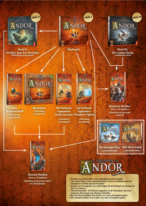 Keer terug naar de wereld van Andor met drie nieuwe legenden! De avonturen “Schaduw over Cavern”, “Vreemd Vaderland” en “De Laatste Schaduw” kunnen met het basisspel worden gespeeld. Vecht tegen nieuwe vijanden, roep de hulp in van machtige bondgenoten en ervaar Andor zoals je het nog nooit eerder hebt gezien!