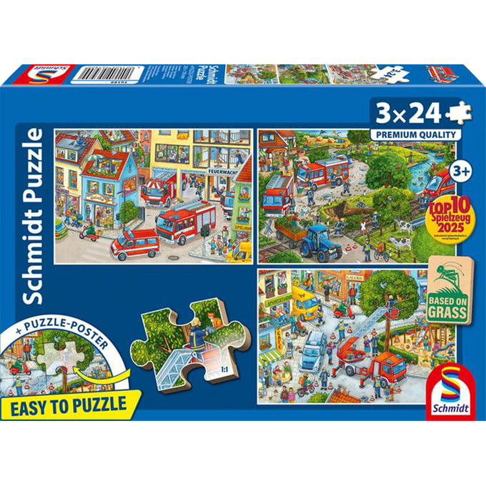 Kinderpuzzel van Schmidt Spiele – groot legplezier voor kleine ontdekkers. 3 x 24 stukjes afbeeldingen met allerlei voertuigen.