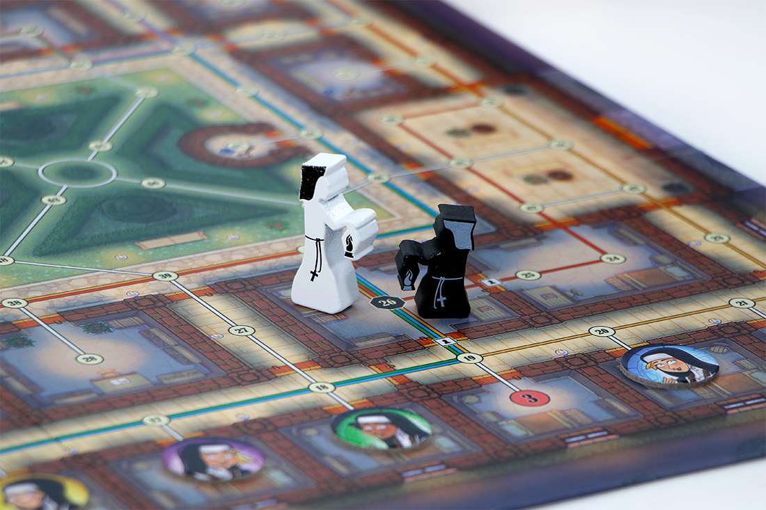 In het holst van de nacht sluipen de novices (nieuwelingen) door het klooster om hun geheime wens te vervullen. Ze moeten stil zijn, want ze willen niet door de nonnen betrapt worden. Lukt het jou om in dit spannende familiespel de nonnen te slim af te zijn of juist de ontsnapte novices te vangen?