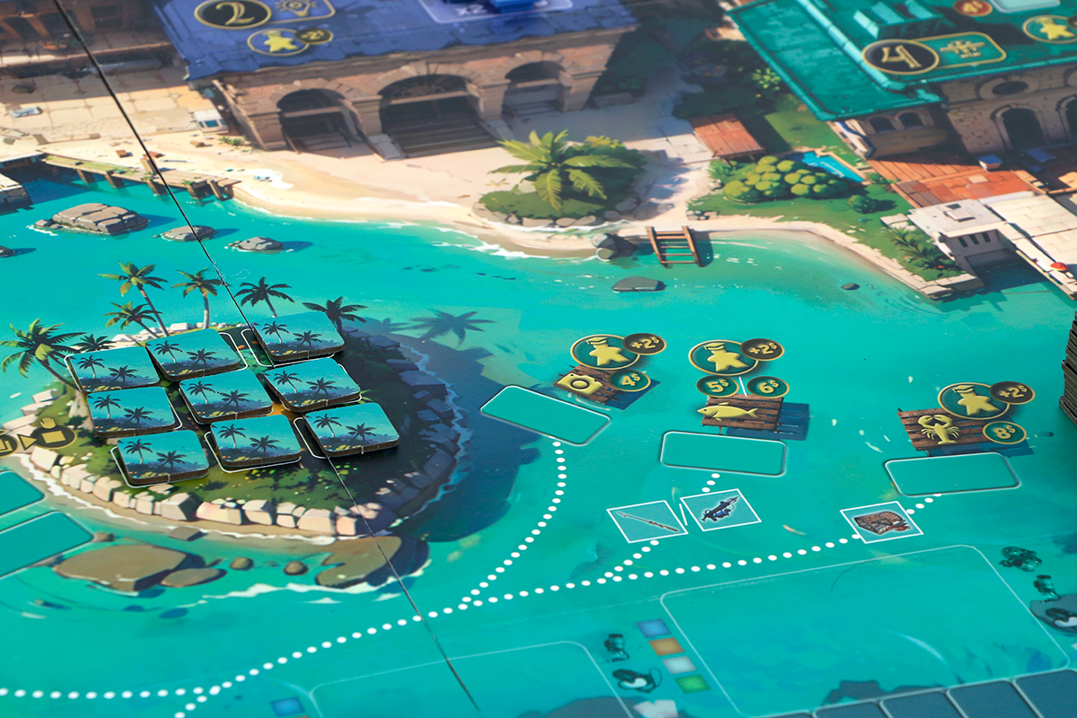 Ga op jacht naar legendarische schatten, trotseer gevaarlijke haaien en versterk je reputatie in Thesauros! In dit expertspel draait alles om worker-placement, geldbeheer en slim plannen. Alleen de beste strateeg gaat er met de winst vandoor!