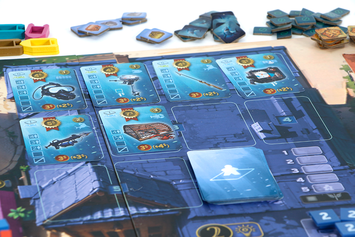 "Geen typische 999 Games titel, maar daarom juist zo leuk om in een kleine oplage exclusief via onze webshop aan te kunnen bieden aan de expert speler in NL! In dit spel zijn thema en spelmechanismen sterk verwoven wat ik altijd een extra boost vind geven op de spelbeleving. Het is een heerlijke brainburner met een tof thema waarin je aan de hand van worker placement strategisch en tactisch je acties kiest. - Onze collega Rick